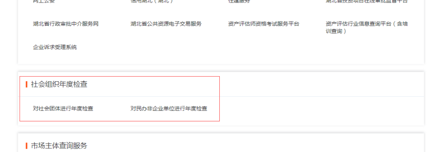 根据“一网通办”相关要求,全市性社会团体年检工作通过“湖北政务服务网”(http://zwfw.hubei.gov.cn/)办理。为方便社会团体网上办理年检,登记管理机关对年检系统进行了优化,并在“湖北政务服务网”首页的“特色服务”中设立“社会组织年度检查”入口。具体填报步骤见“年度检查填报指南”(详见附件)。