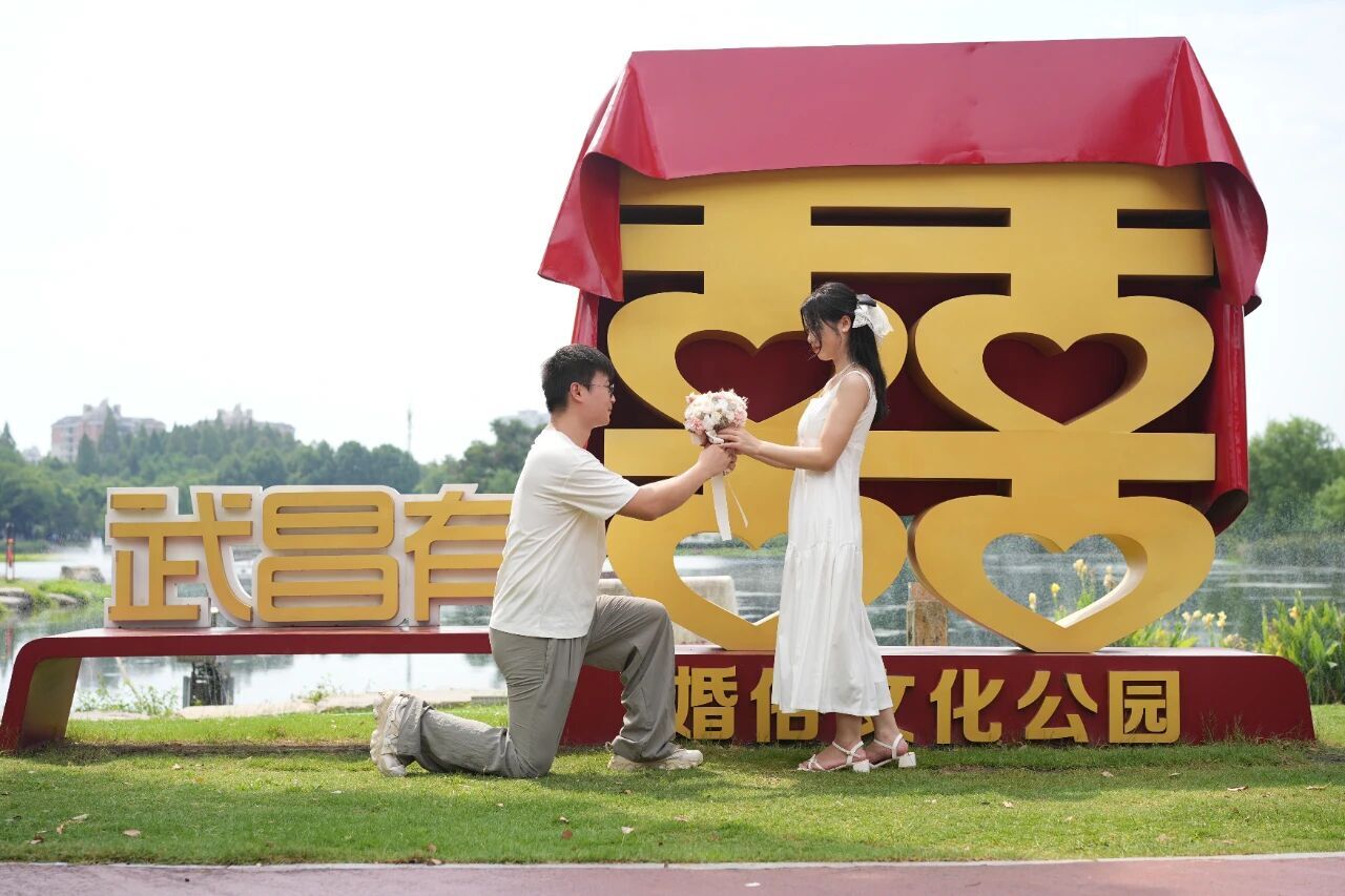 在这里,新人不仅能于湖光山色中缔结婚约,还能共赴“和美武昌红·寻礼记”特色幸福打卡活动。活动以传统婚俗“六礼”为主线,创新传导婚事简办“六理”(相遇之理、相知之理、承诺之理、婚恋之理、法定之理、新风之理),融入婚书拓印、神圣时刻颁证仪式等特色环节,让来自全国各地的“全国通办”新人,在武汉就地体验独具韵味的婚恋仪式感。