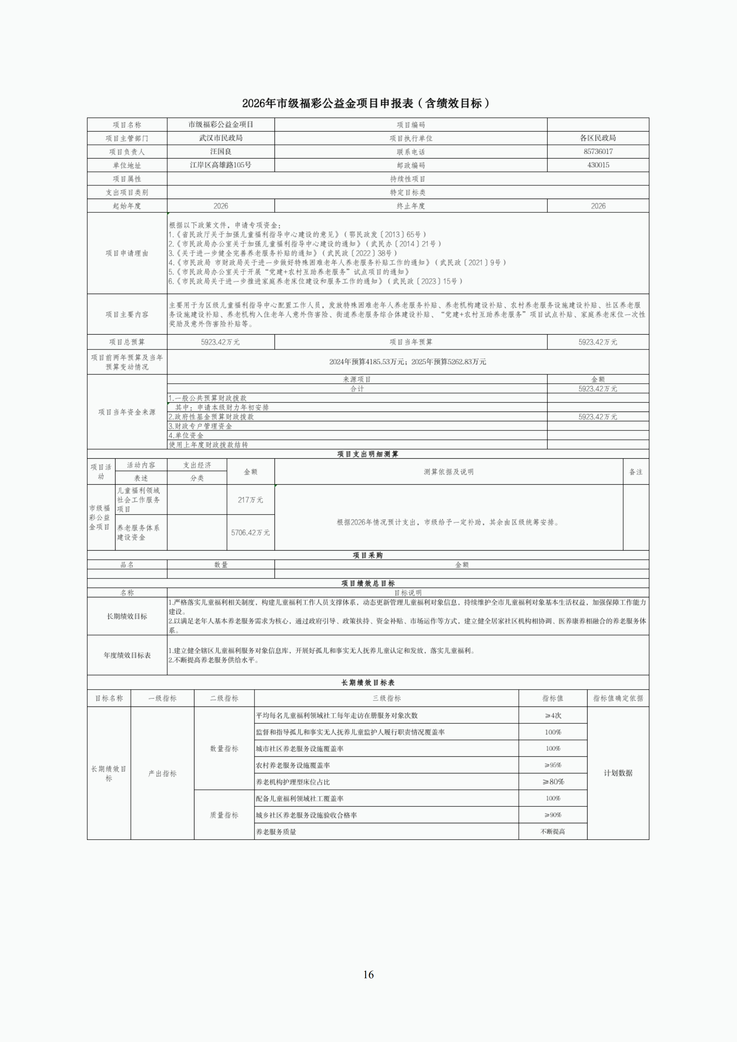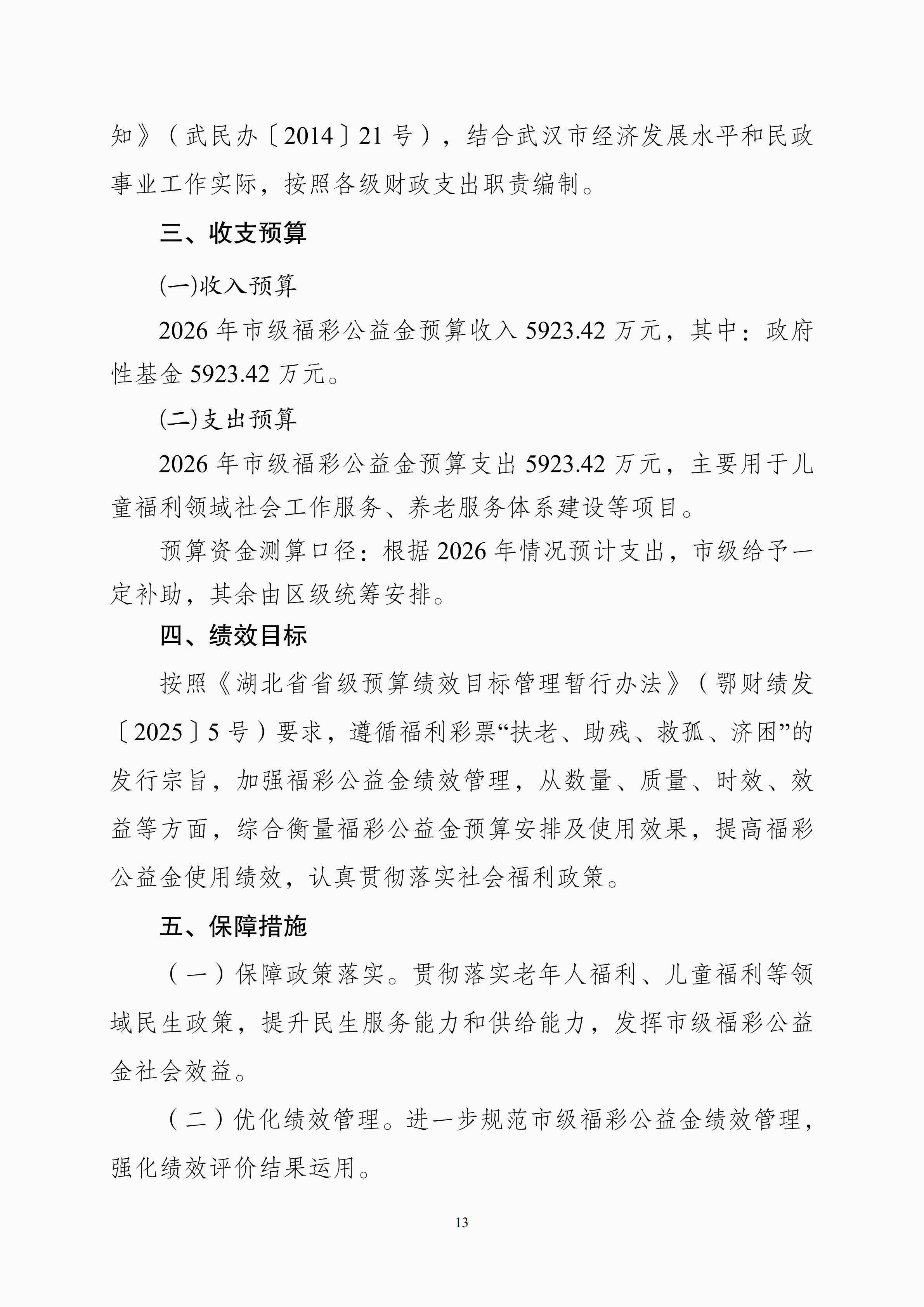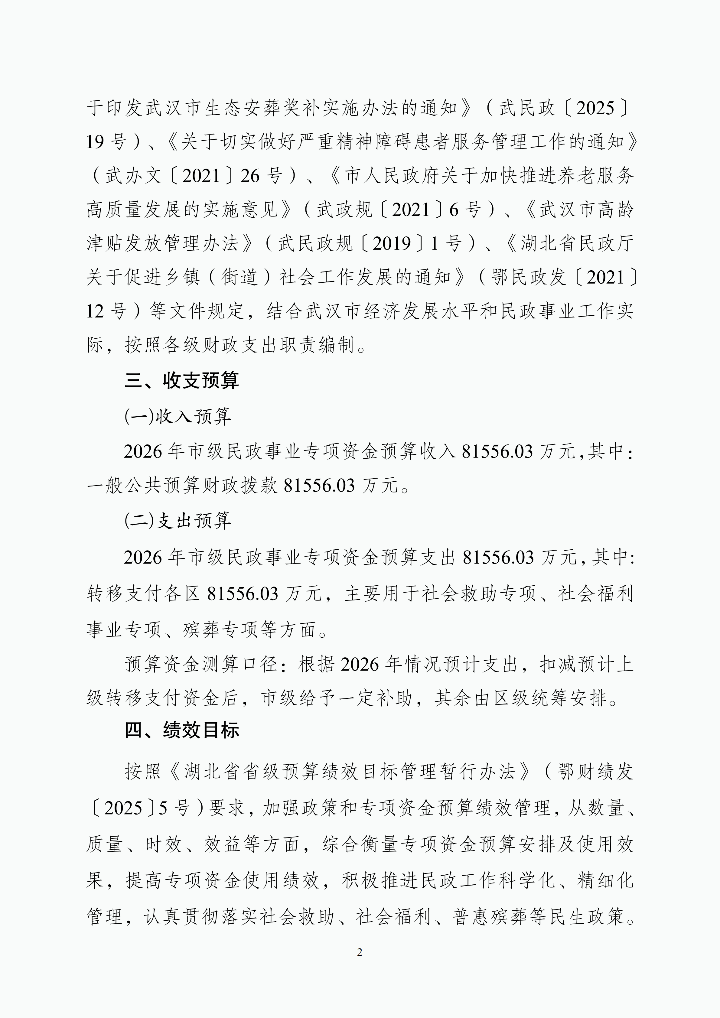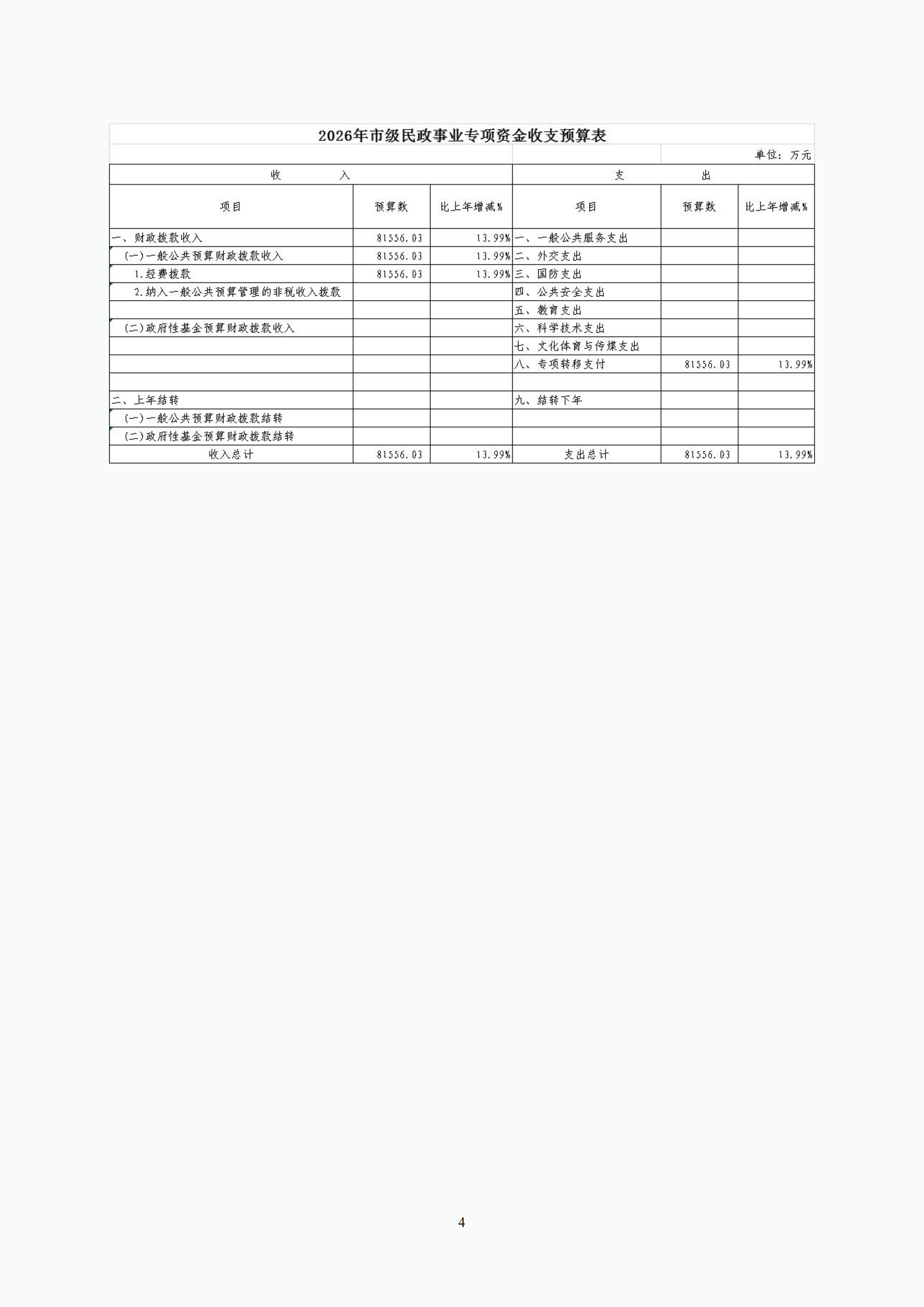 2026年市级民政事业专项资金预算和福彩公益金预算