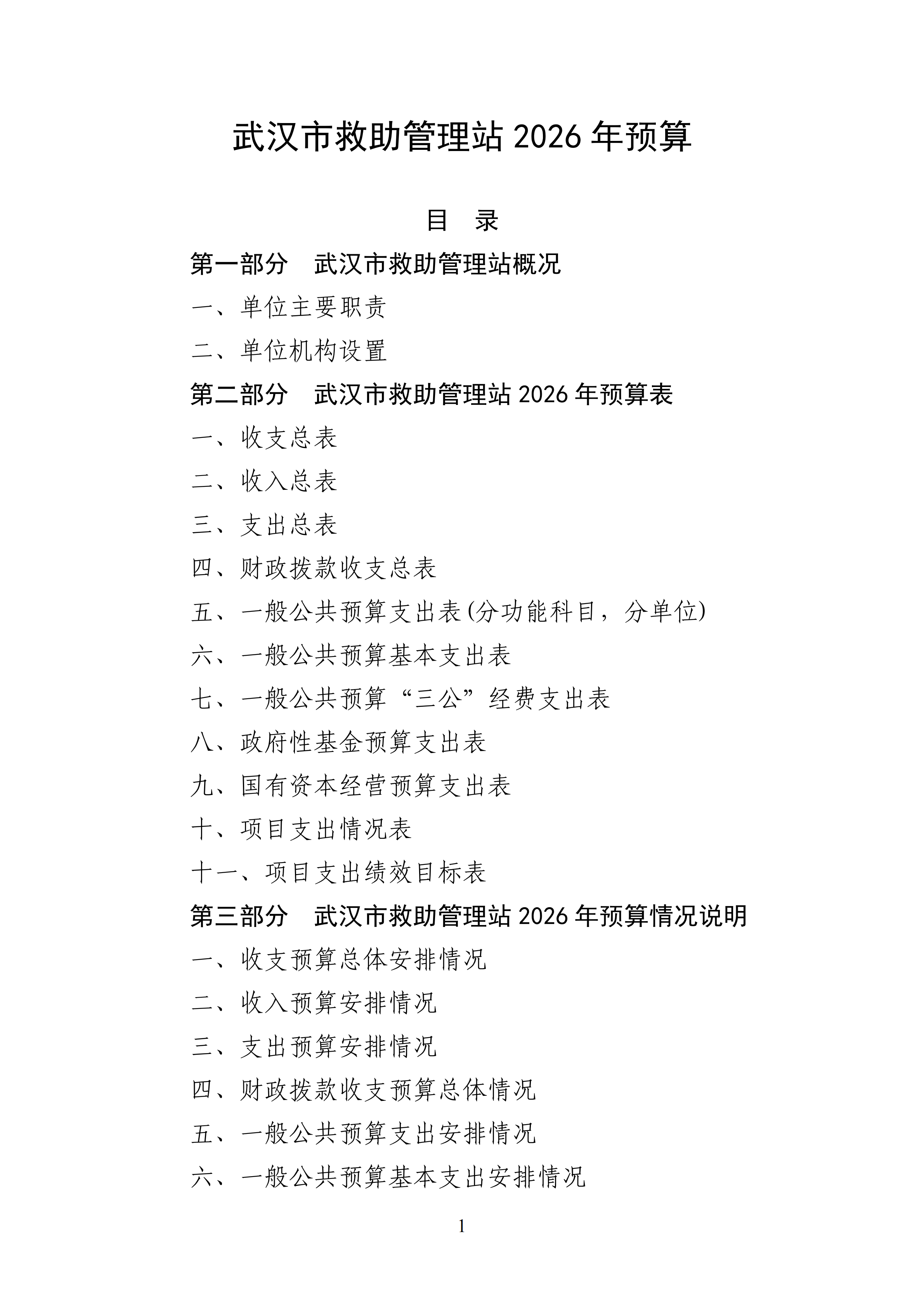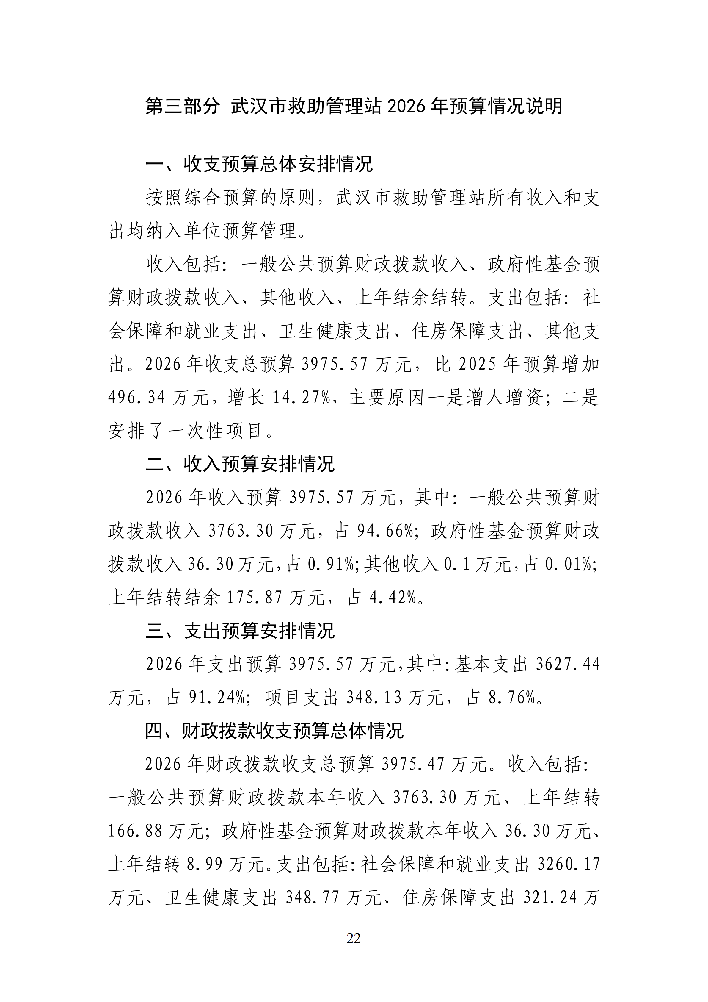 武汉市救助管理站2026年预算