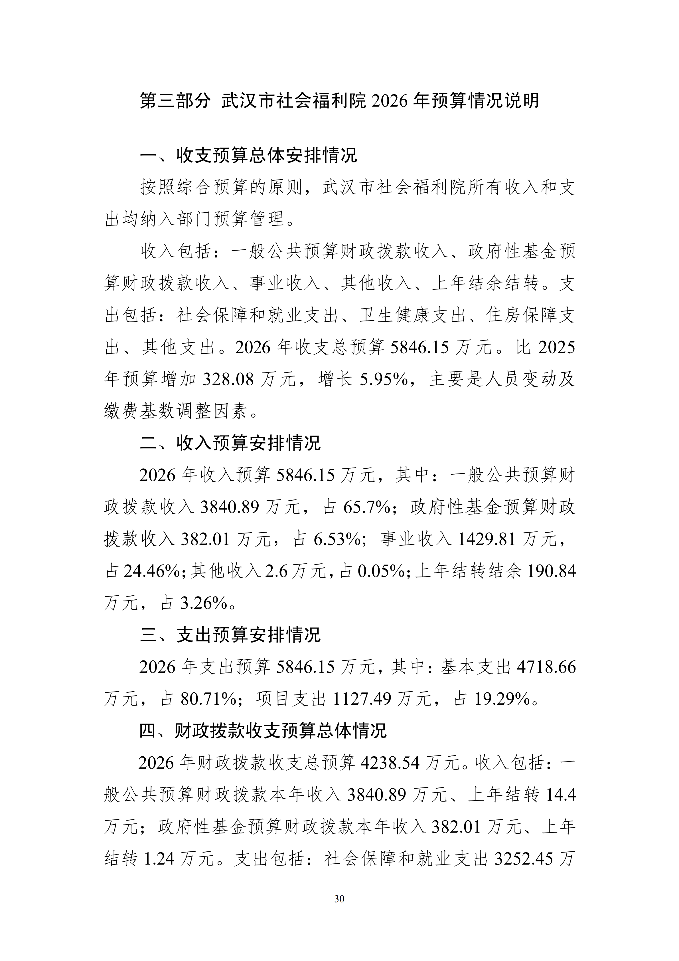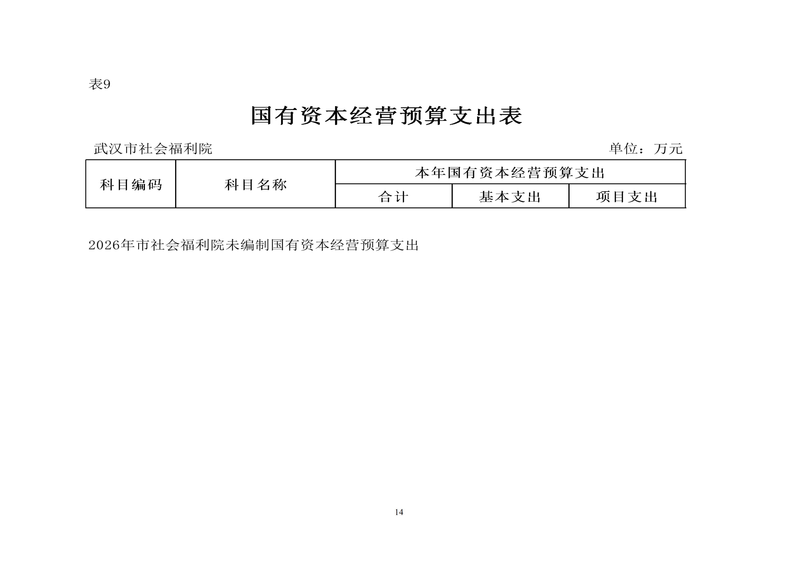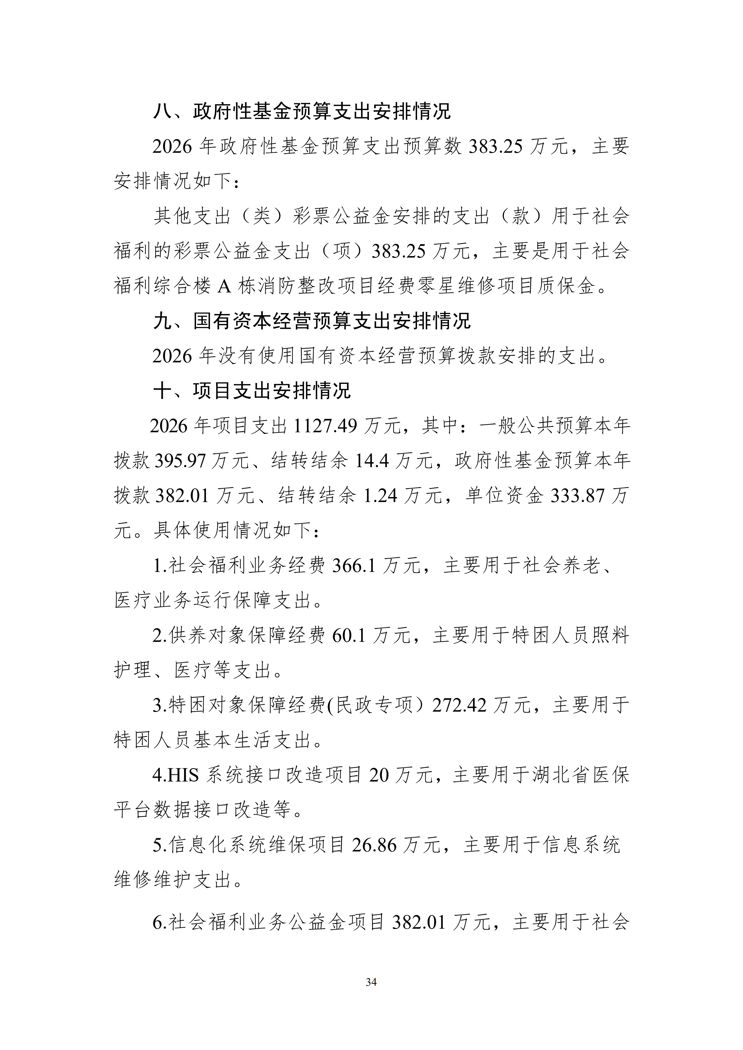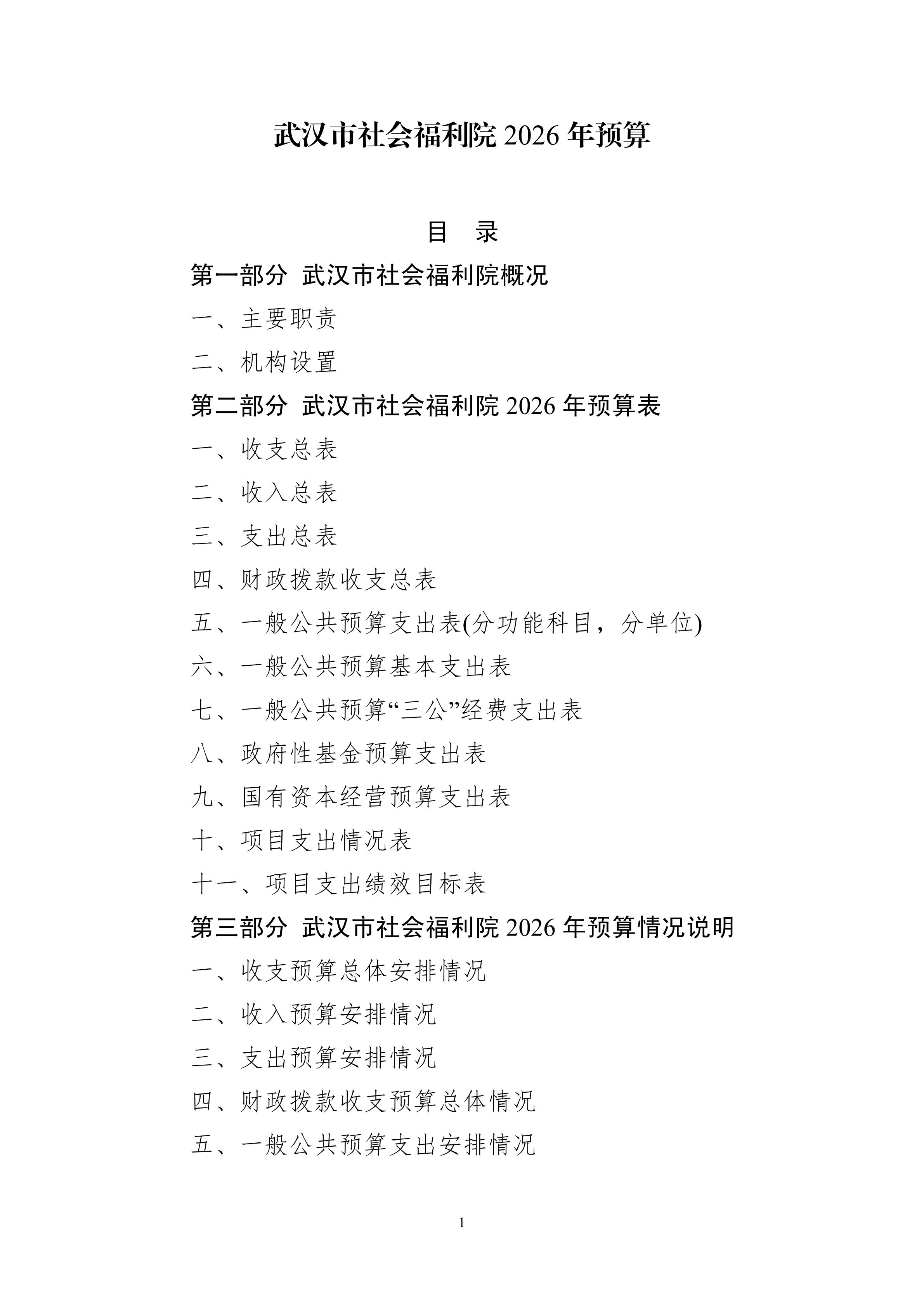 武汉市社会福利院2026年预算