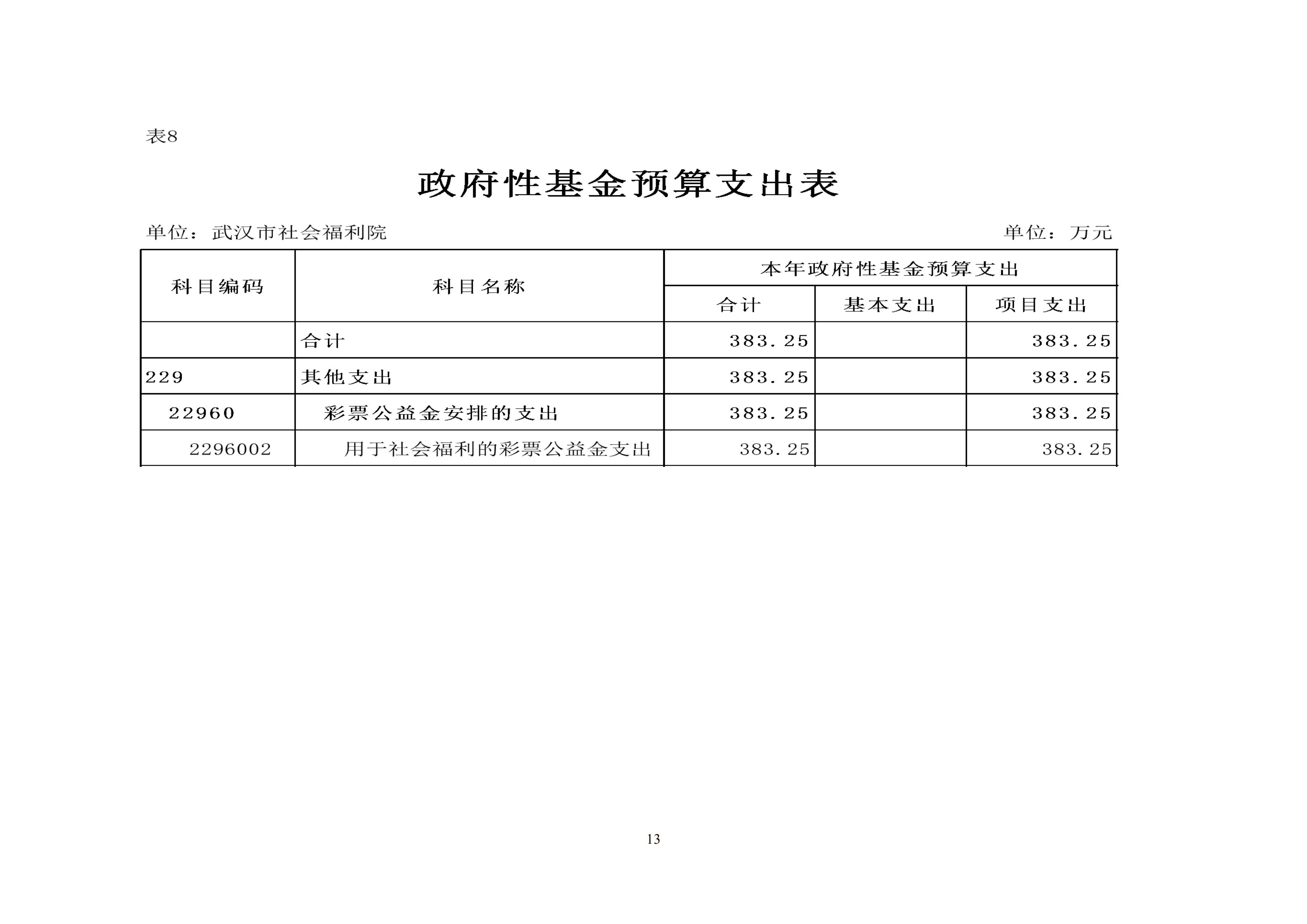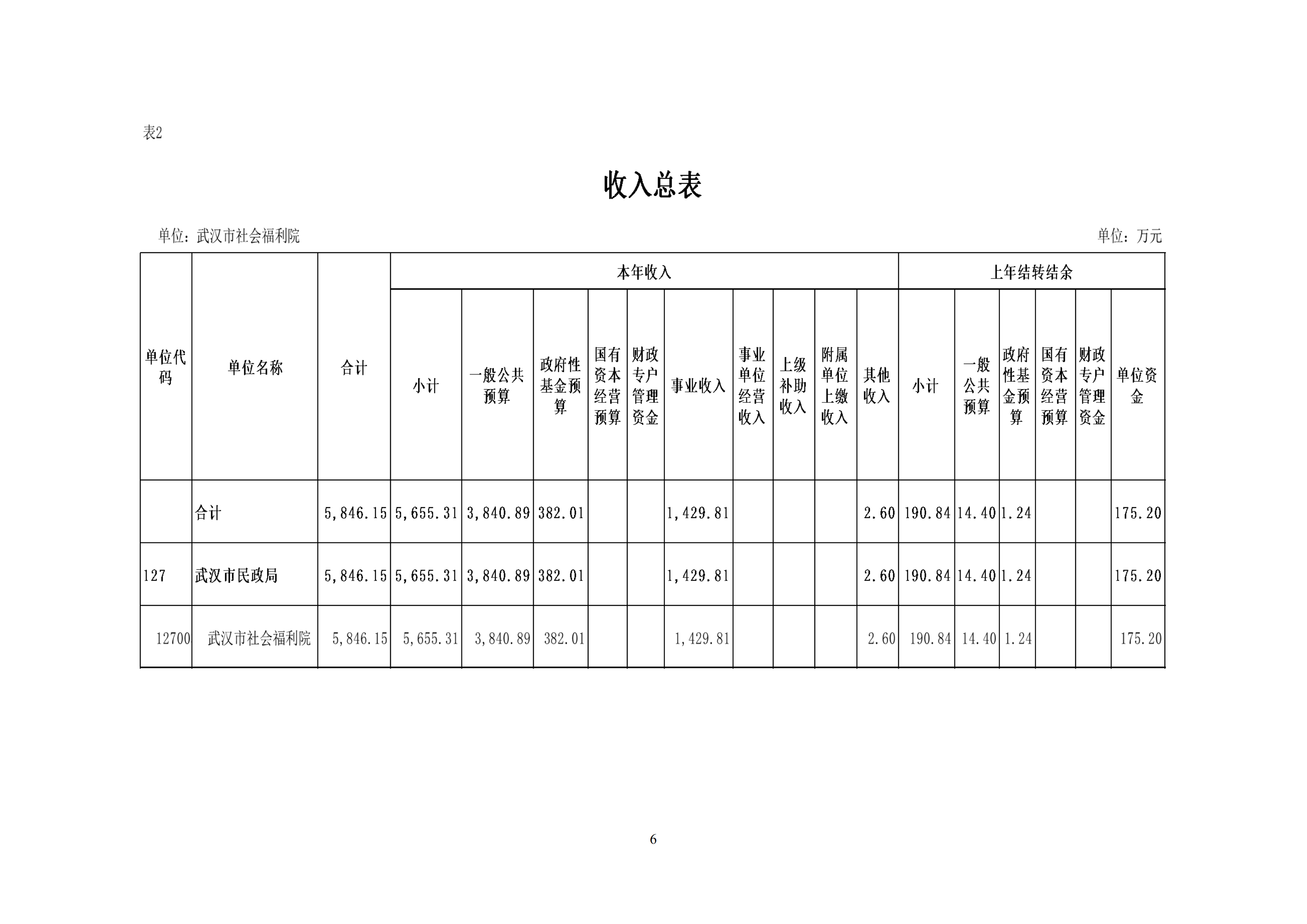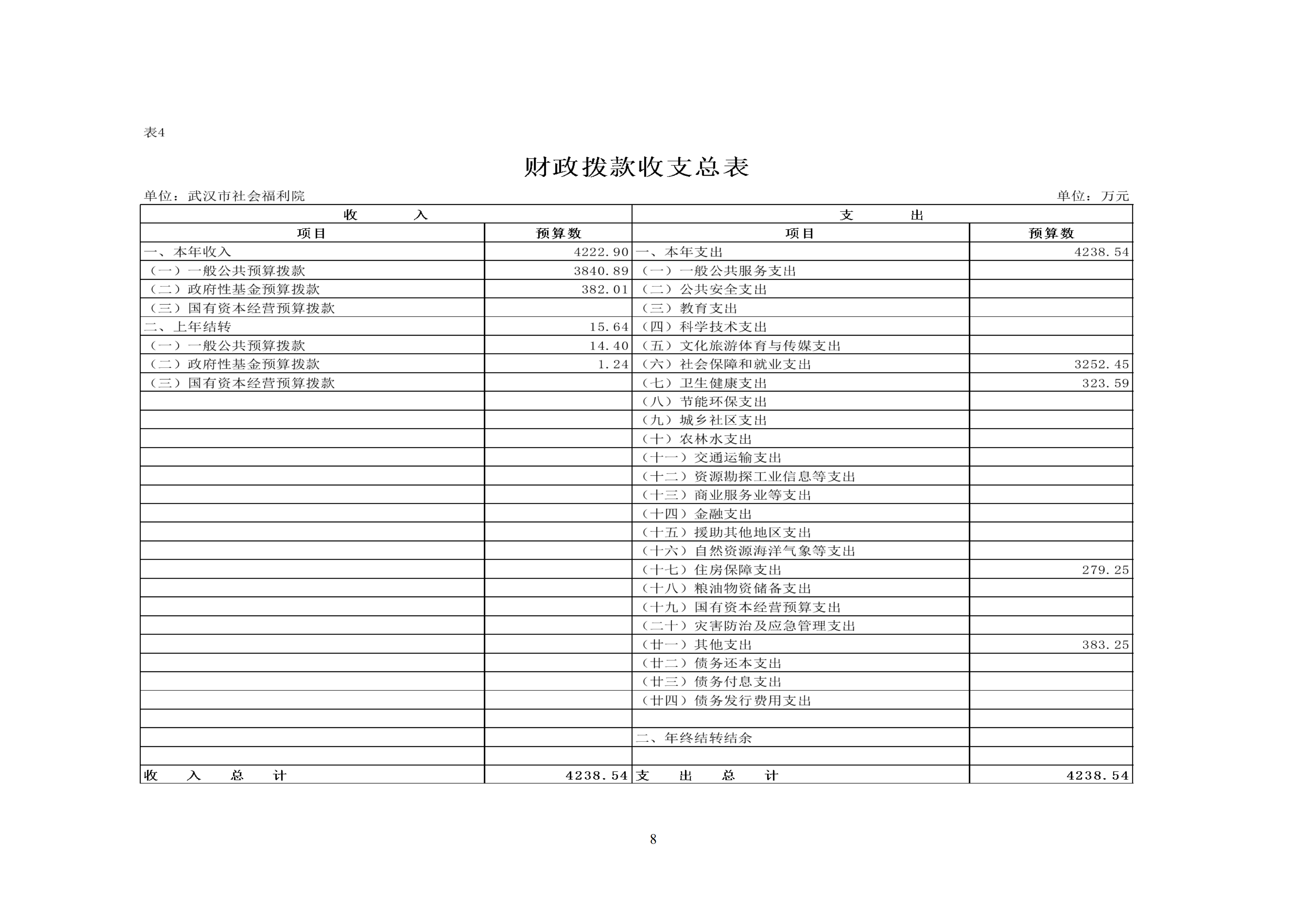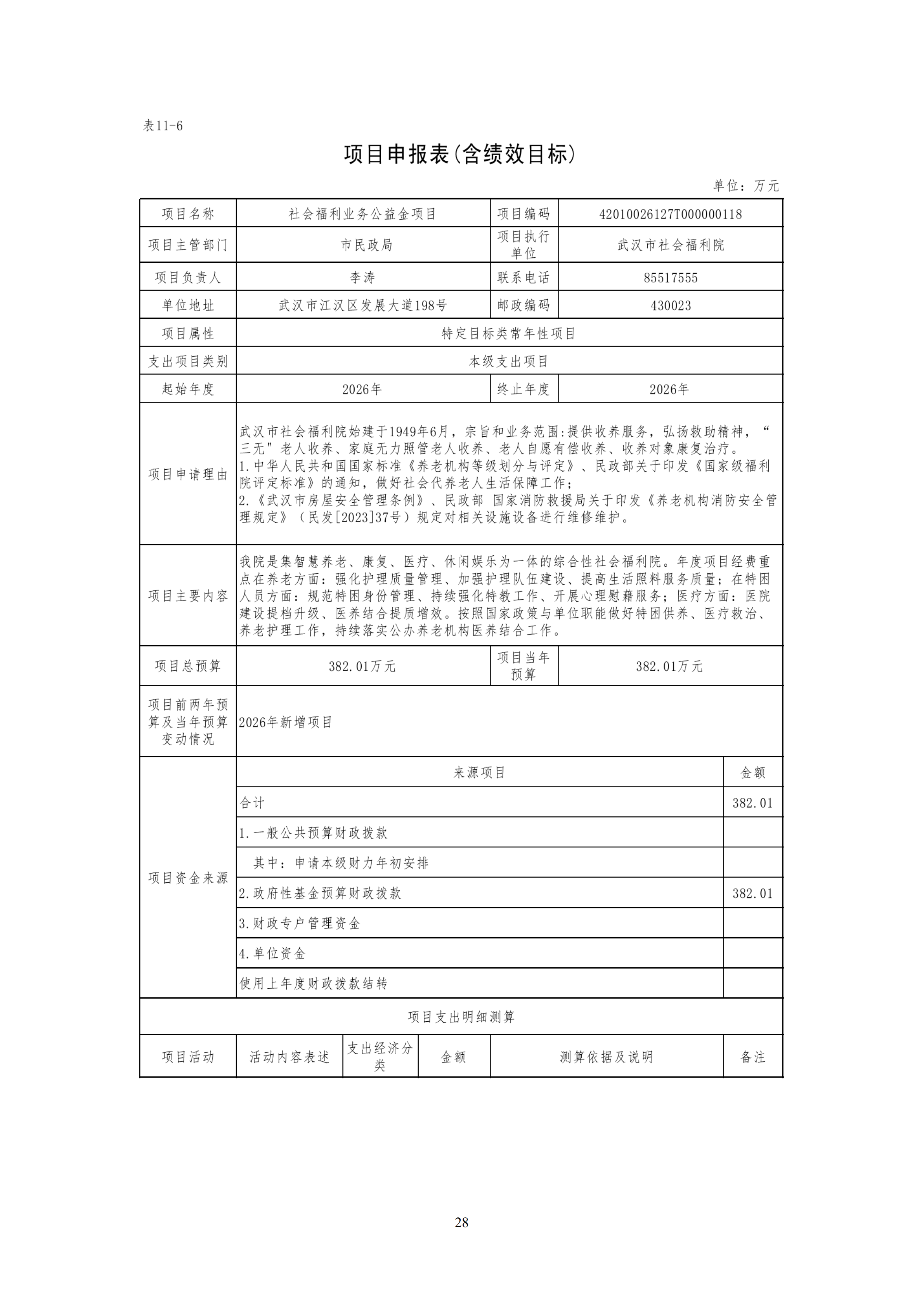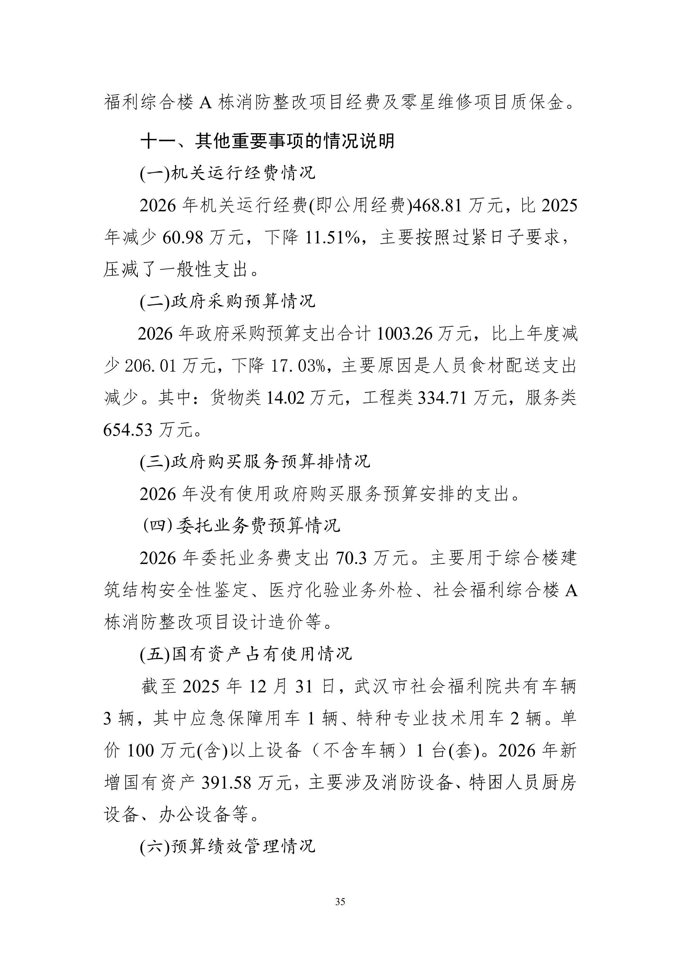 武汉市社会福利院2026年预算