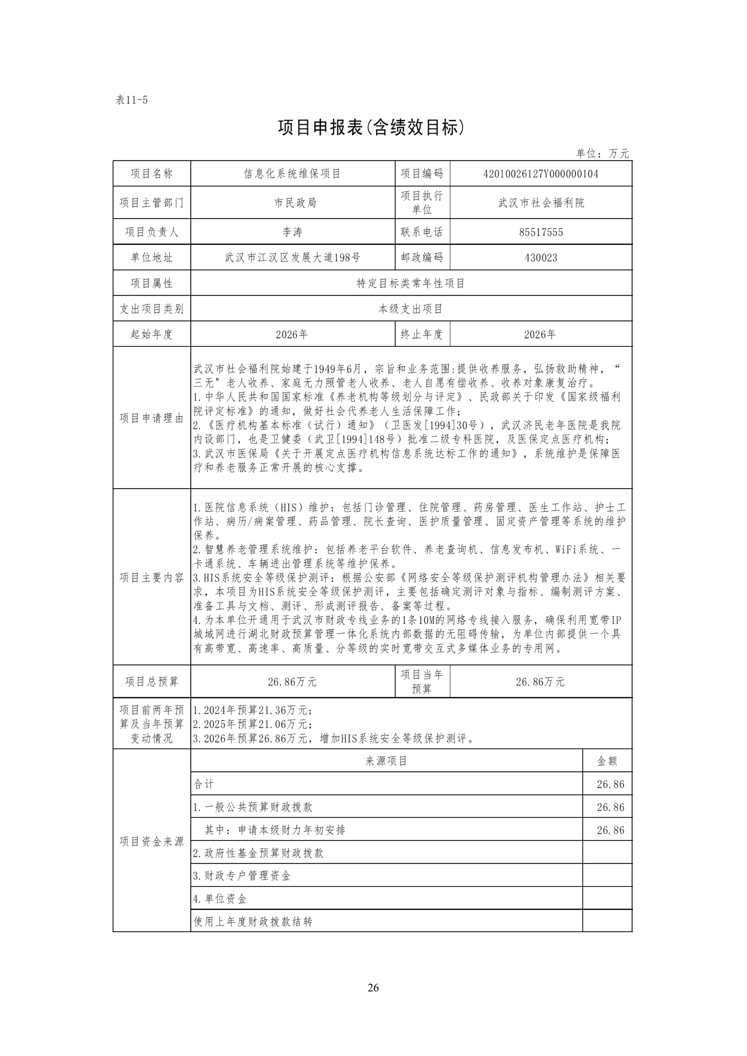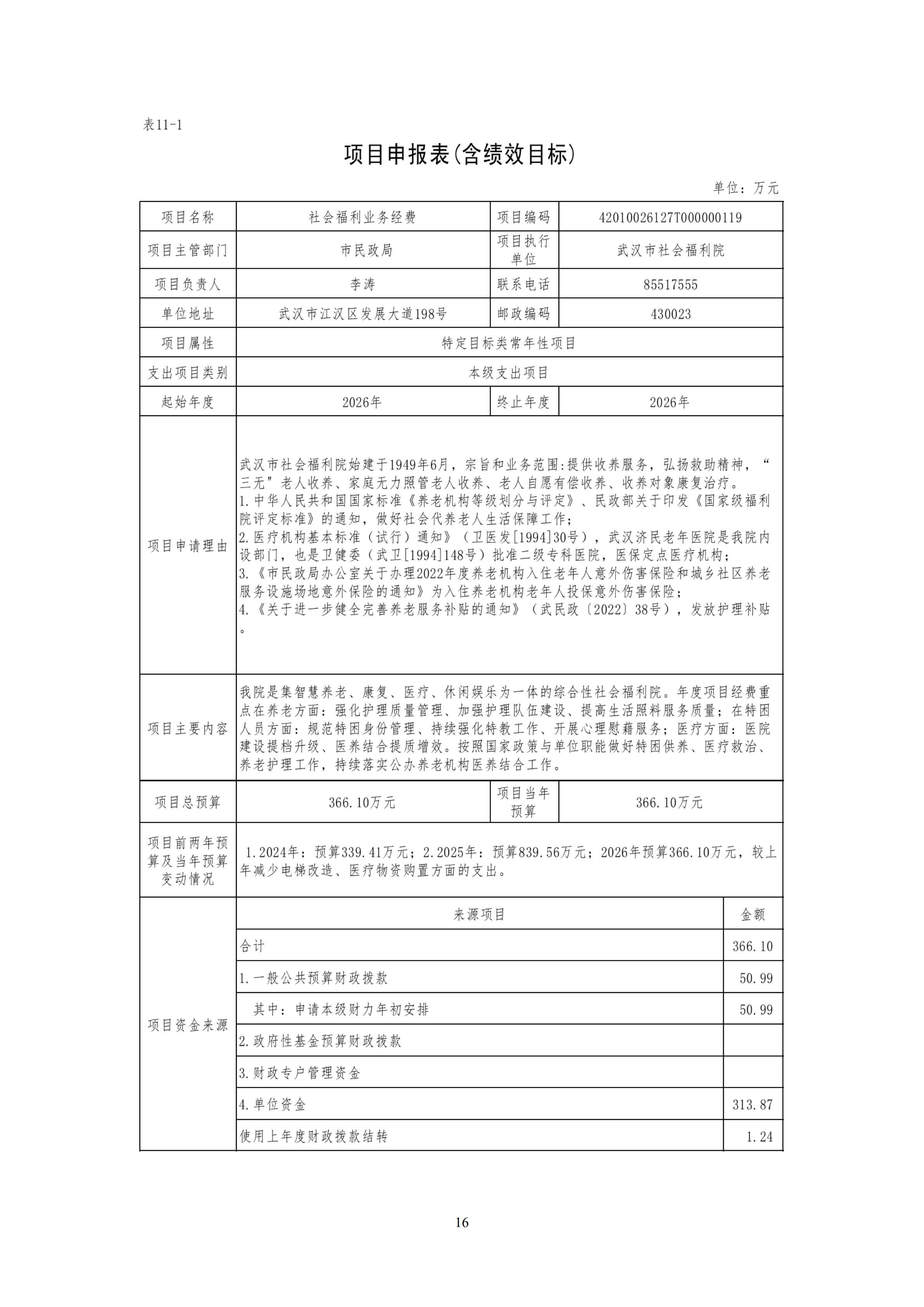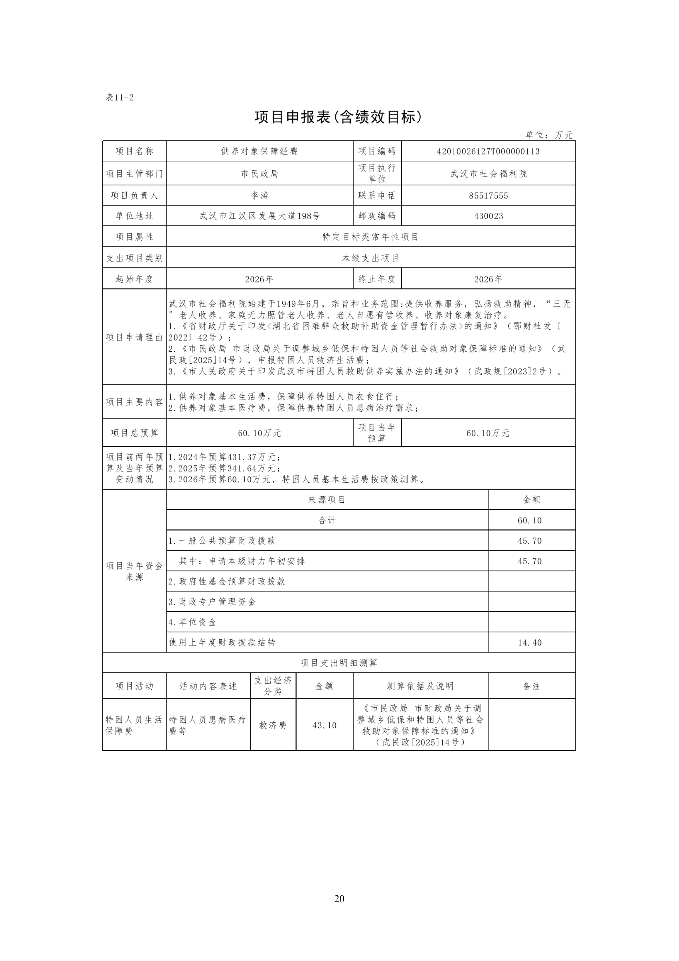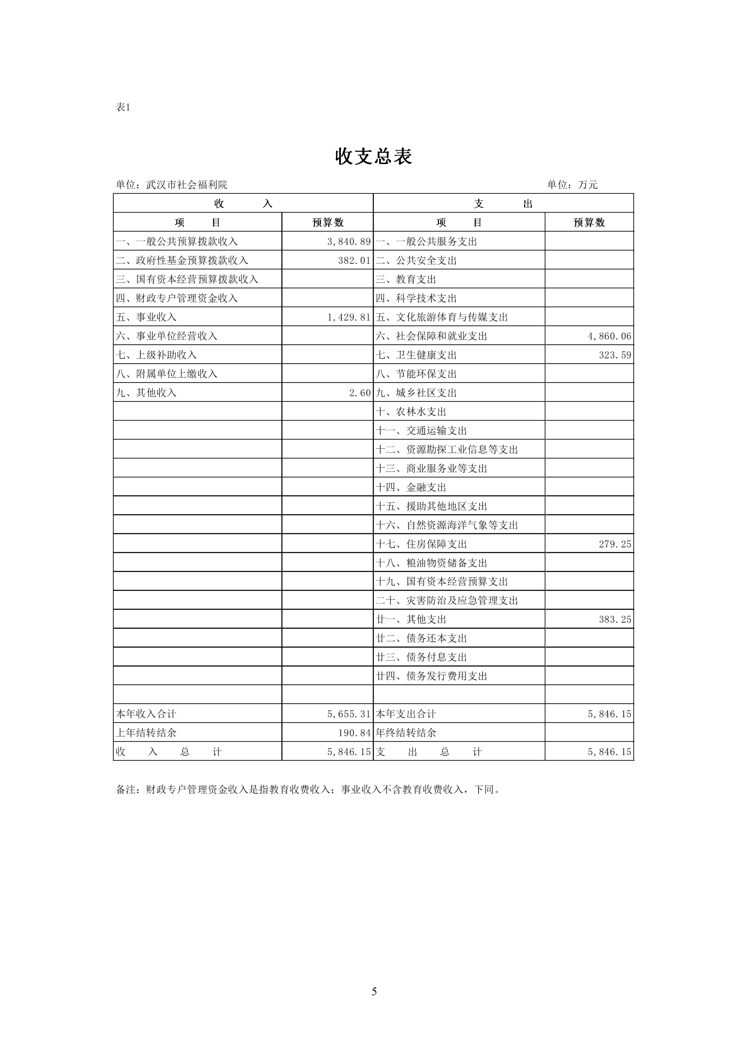 武汉市社会福利院2026年预算