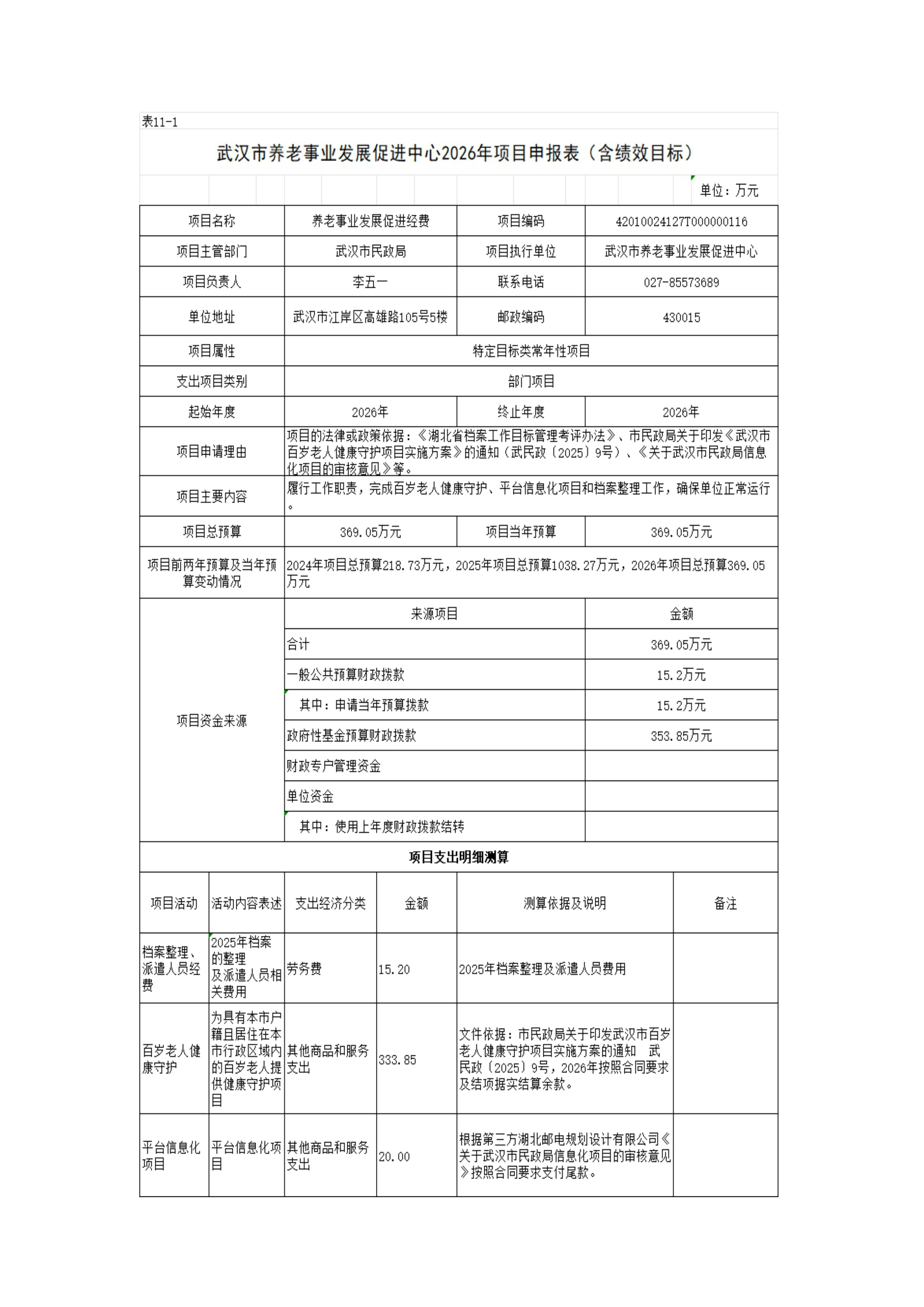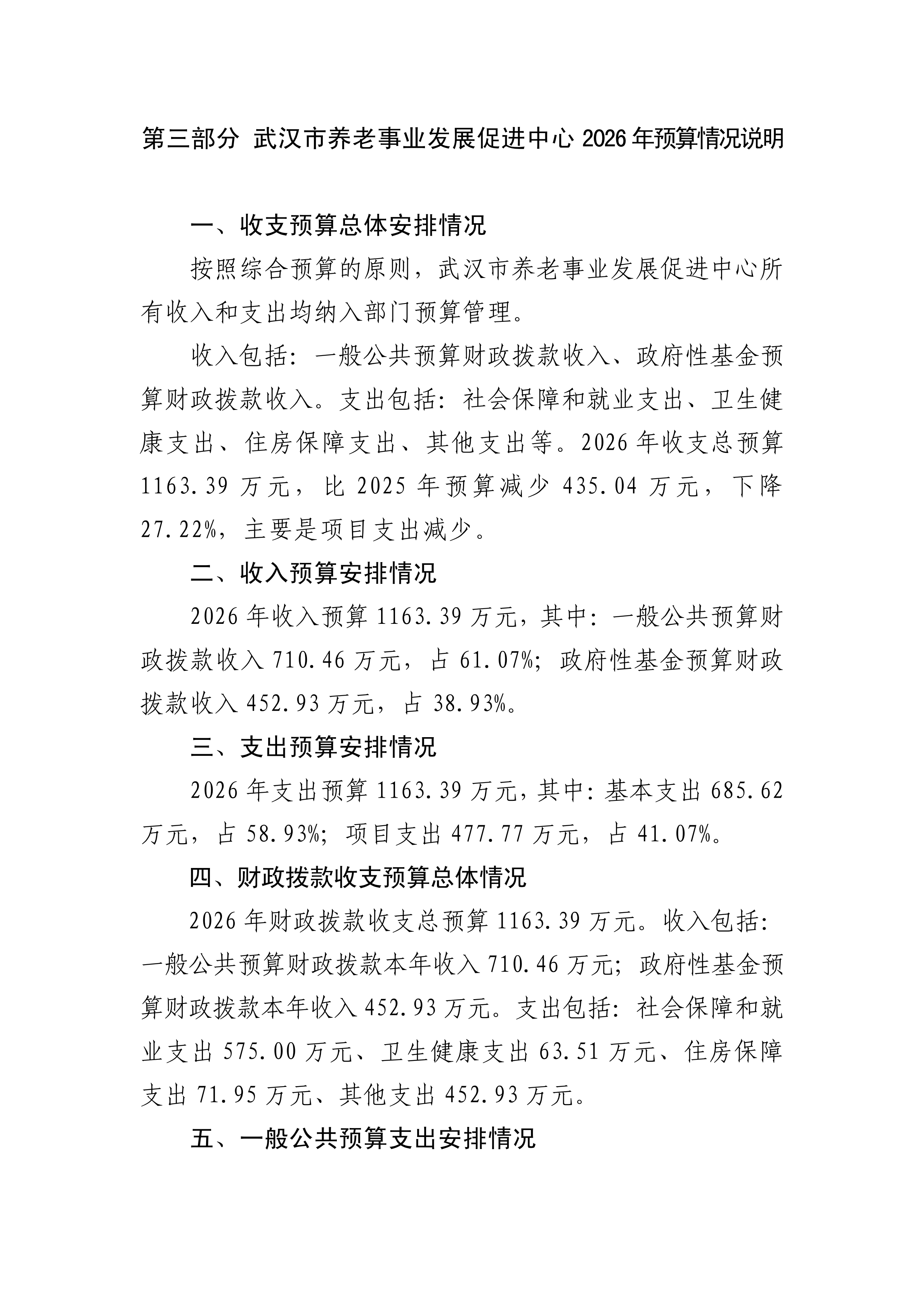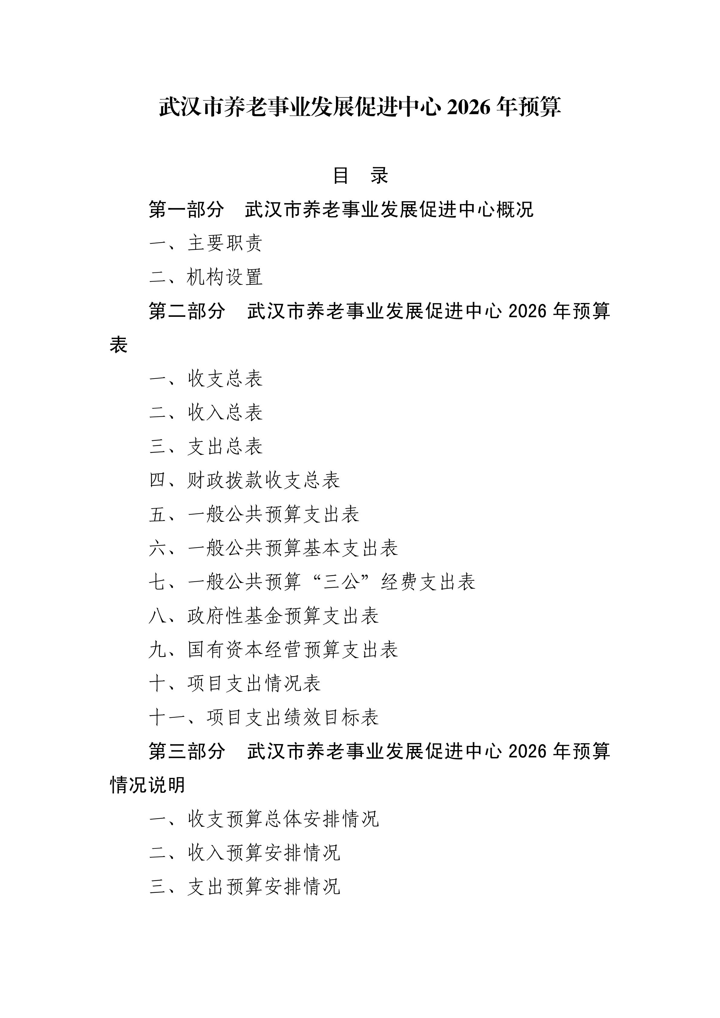 武汉市养老事业发展促进中心2026年预算