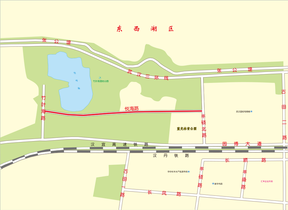 位于硚口区长丰街道辖区,东西走向,西起竹叶海路,东至丰硕北路,全长约1566米,宽约20—30米。因靠近竹叶海公园,且“悦”含喜悦、高兴等吉祥寓意,故名。