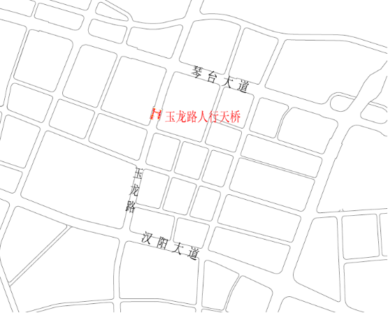 位于汉阳区琴台大道南侧,天桥跨越玉龙路,故名。