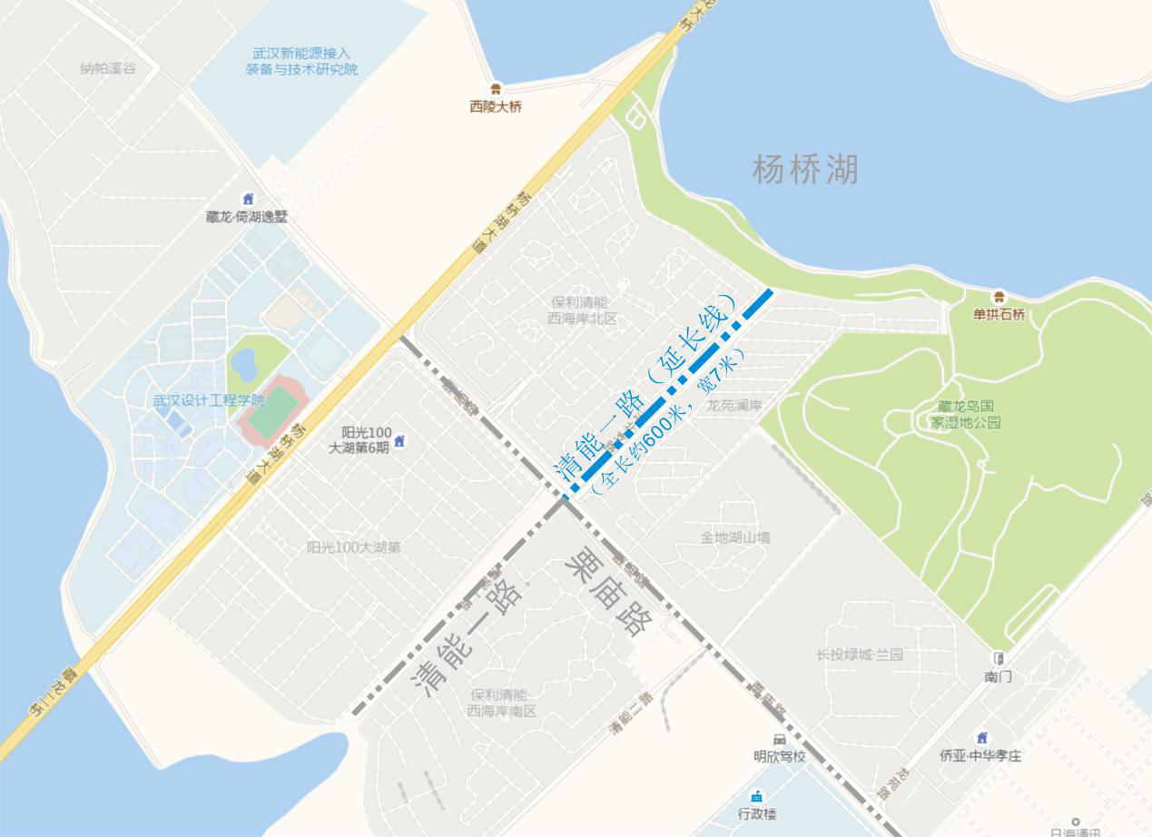 位于江夏区藏龙岛产业园辖区,南北走向,北起杨桥湖岸边,南至栗庙路。全长约600米,宽约7米。柏油路面。因该道路是原清能一路的延长线,故名。延伸后,该路东北起杨桥湖岸边,西南至环湖路(已规划未建),全长约1243米,宽约7米。