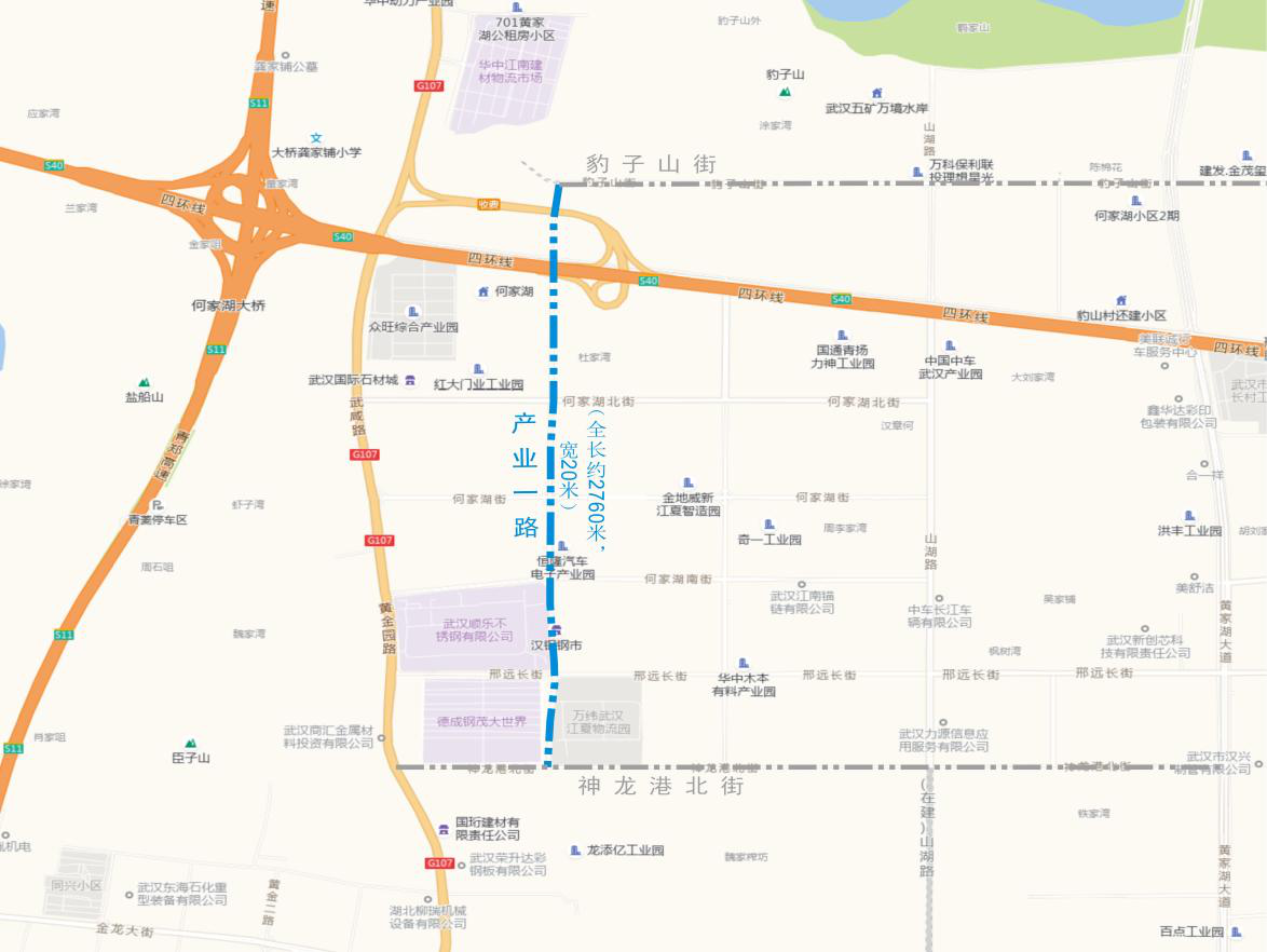 位于江夏区大桥现代产业园辖区。 南北走向,北起豹子山街,南至神龙港北街。全长约2760米,宽约20米。沥青路面。因该道路为产业区第一条最主要的南北向道路,故名。