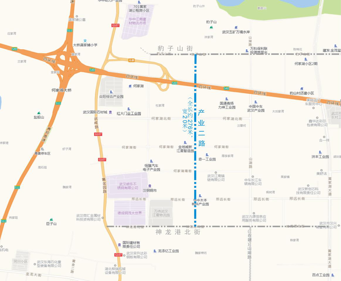 位于江夏区大桥现代产业园辖区。 南北走向,北起豹子山街,南至神龙港北街。全长约2760米,宽约20米。沥青路面。因该道路为产业区第二条最主要的南北向道路,故名。