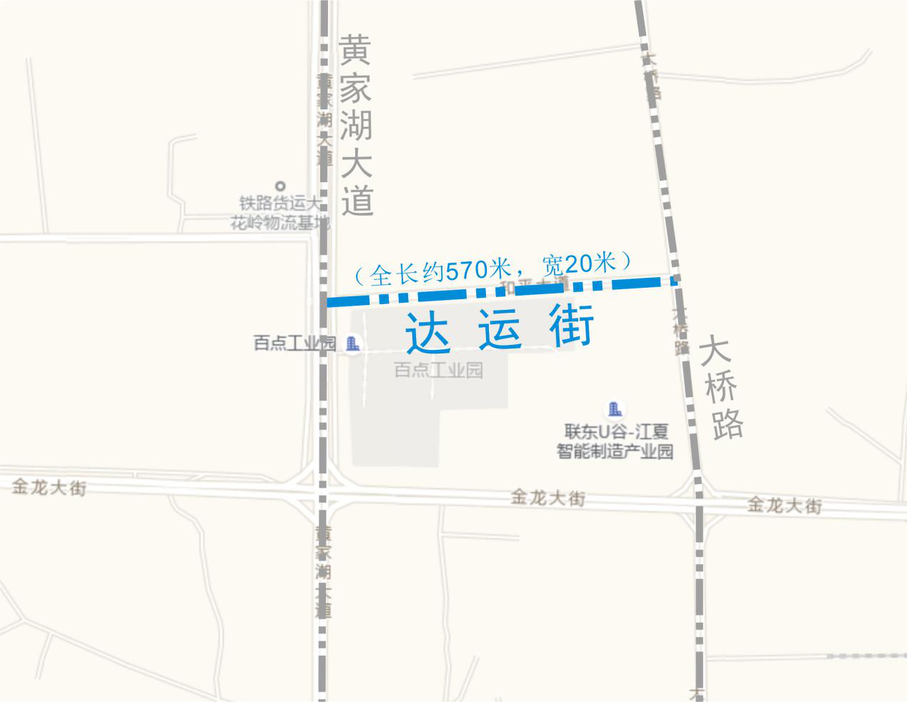 位于江夏区大桥现代产业园辖区。东西走向,西起黄家湖大道,东至大桥路。全长约570米,宽约20米。沥青路面。因位于物流工业园,寓意运输通达之意,故名。