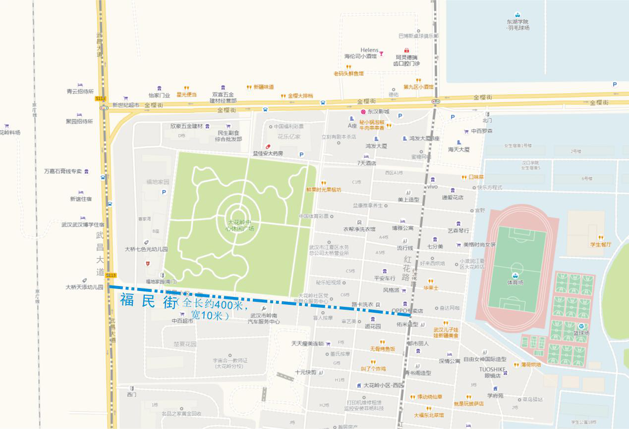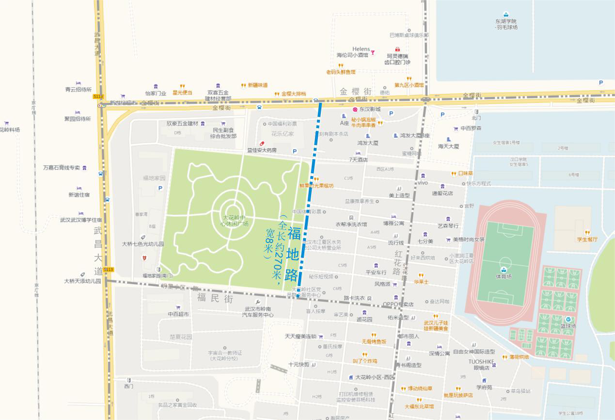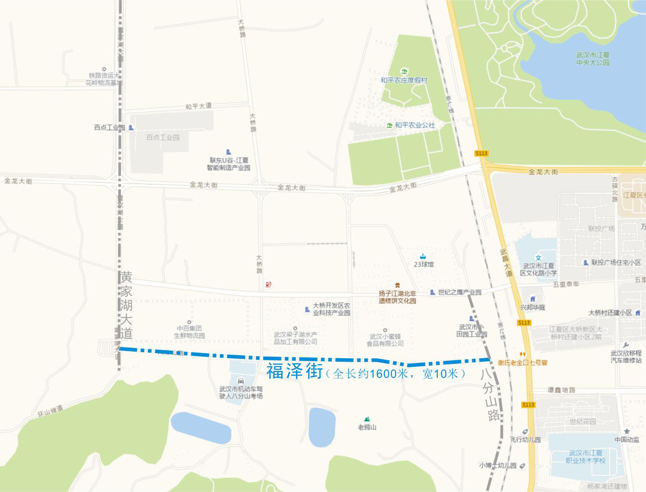 位于江夏区大桥现代产业园辖区。 东西走向,西起黄家湖大道,东至八分山路。全长约1600米,宽约10米。沥青路面。因寓意福泽万民,故名。