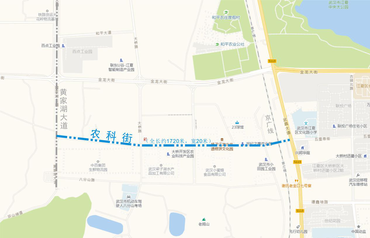 位于江夏区大桥现代产业园辖区。东西走向,西起黄家湖大道,东至武昌大道,主要经过八分山一路、八分山二路。全长约1720米,宽约20米。沥青路面。因位于新农业产品科技园,故名。